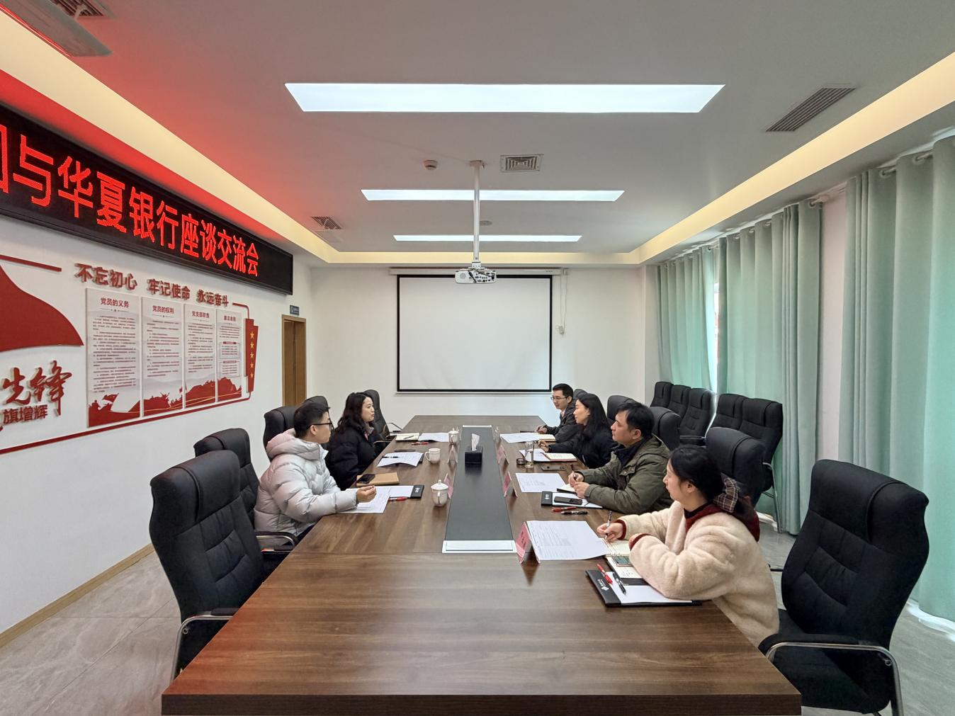 1月6日,集团党支部委员、总经理杨婷婷同华夏村镇银行江油支行李艳梅副行长一行就集团重点项目谋划、融资需求相关事宜进行座谈。(素材来源:财务融资中心 邓云超)